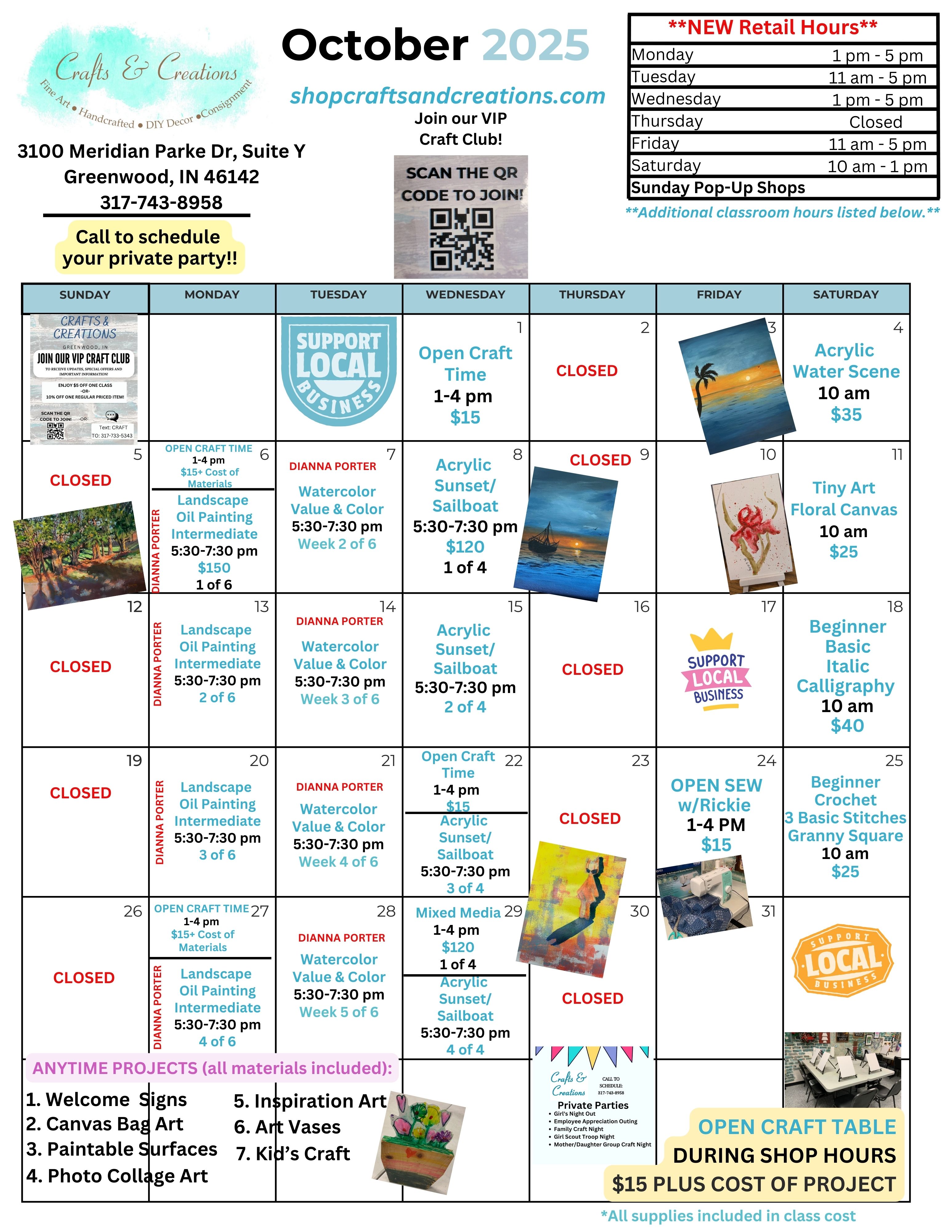 "I attended a small local artists show today at Crafts and Creations. It was so nice! A hidden gem in Greenwood!"